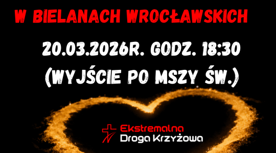 - Po raz pierwszy Ekstremalna Droga Krzyżowa z Bielan Wrocławskich 20.03.2026r. po mszy o 18:30 z naszej parafii wyruszy Ekstremalna Droga Krzyżowa (EDK). Uczestnicy podejmą nocne, około 40-kilometrowe wyzwanie na trasie, przeżywając drogę w ciszy, skupieniu i modlitwie. To czas osobistego spot... [read more]