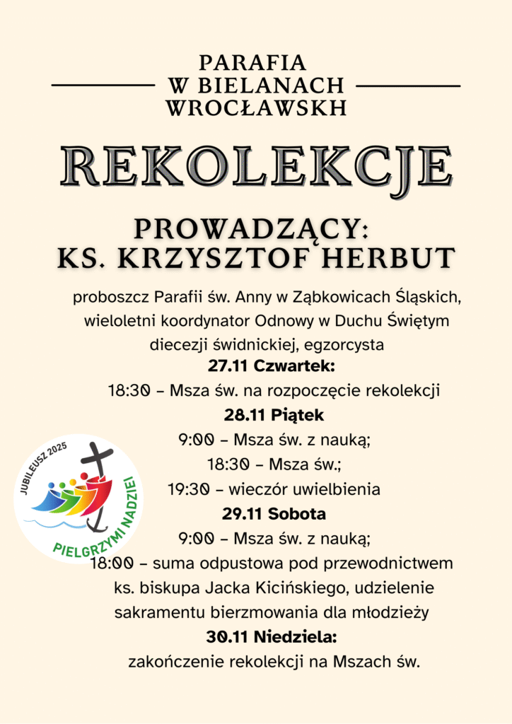 Rekolekcje, prowadzący Ks. Krzysztof Herbut